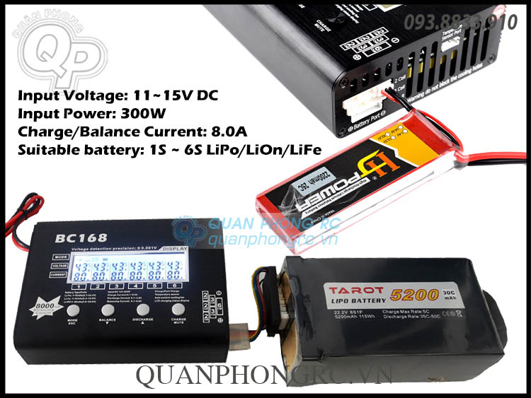 - Sạc 6 cell độc lập, đầu ra dòng điện 8A liên tục