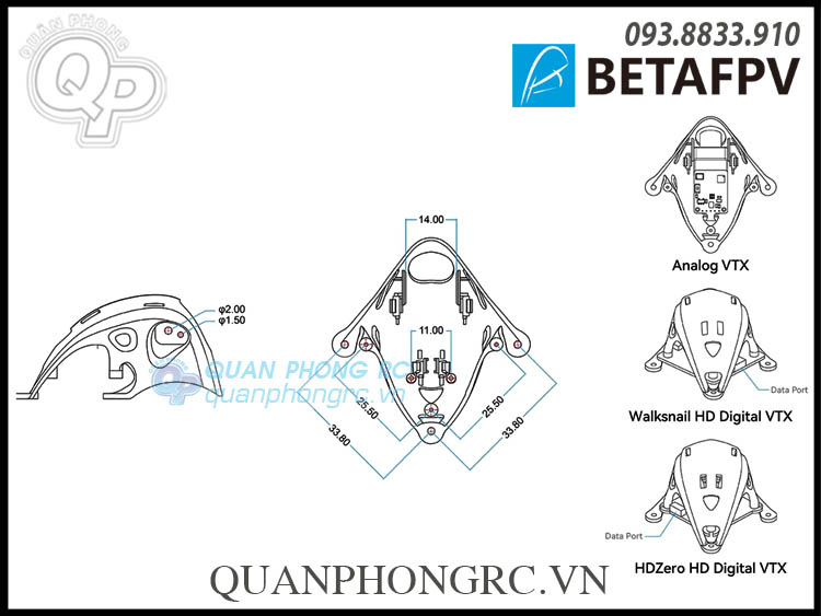 Below picture is the diagram for this canopy. This canopy is applied to 1S Walksnail Avatar Mini HD VTX, HDZero Whoop Lite Bundle, M03 Analog VTX, or most 14mm nano cameras. Other brands' VTXs with similar sizes are available to be mounted on this canopy.