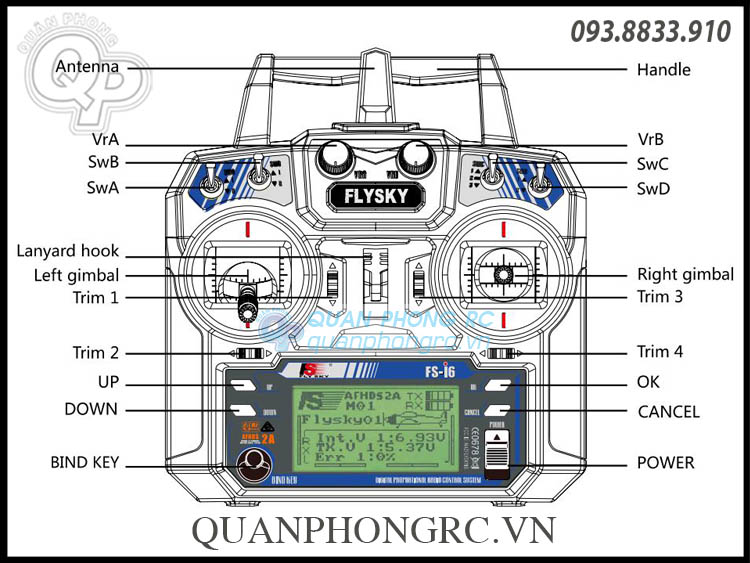 FLYSKY FS-i6 2.4GHz AFHDS Transmitter (Không Rx)