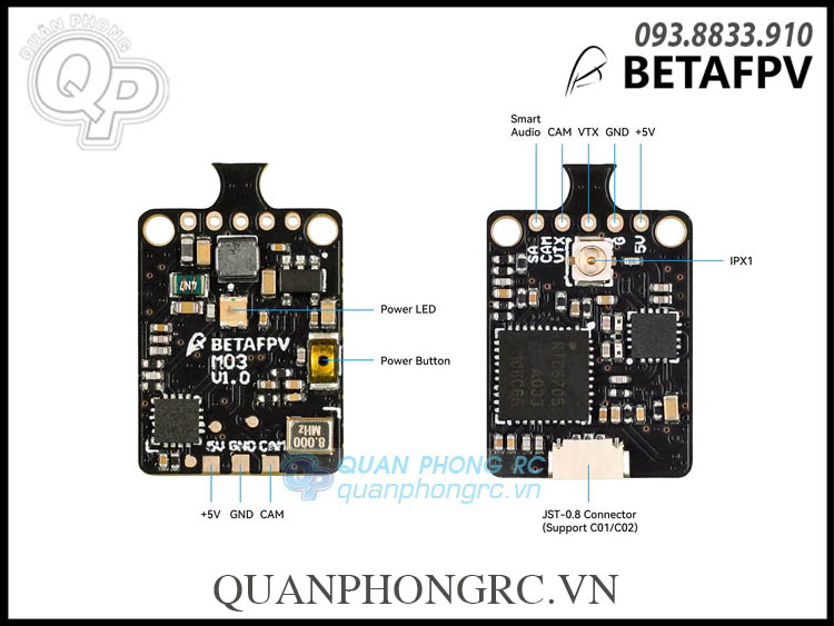 - With the 25-350mW output power, M03 VTX provides a stable image and strong transmission.