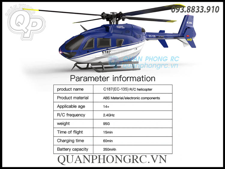 - Mô tả: Máy bay trực thăng RC C187 EC135 (Phiên bản PRO)