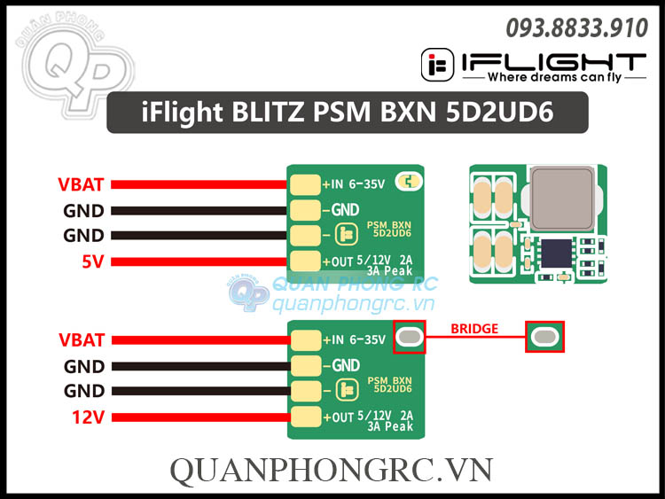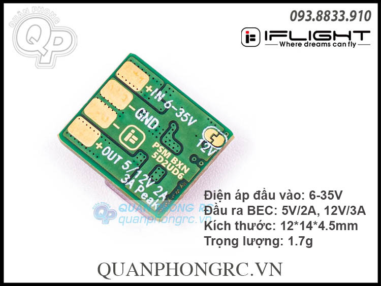 - iFlight Micro 2-8S BEC - Đầu ra 5V / 12V * 1pc
