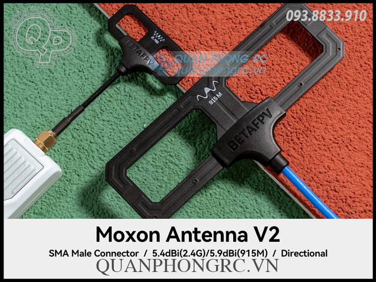 The Moxon antenna is designed and manufactured by BETAFPV for the 2.4G/915MHz/868MHz TX module. The Moxon antenna is a directional antenna with a high gain of 5.5dbi to the front.