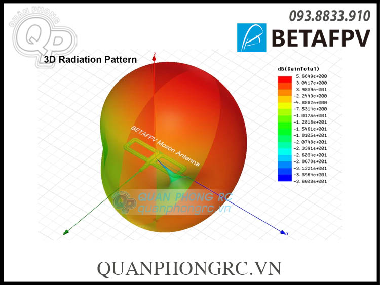 The BETAFPV Moxon antenna is directional to the front. Below is the antenna 3D radiation pattern image.