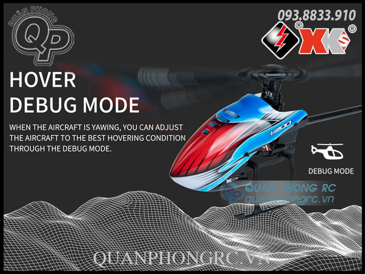 3. Điều khiển từ xa 4 kênh, nhông lái kích thước lớn, cảnh báo điện áp thấp và các chức năng khác. Chế độ Debug đặc biệt, vào chế độ gỡ lỗi có thể điều chỉnh máy bay về trạng thái tốt nhất.