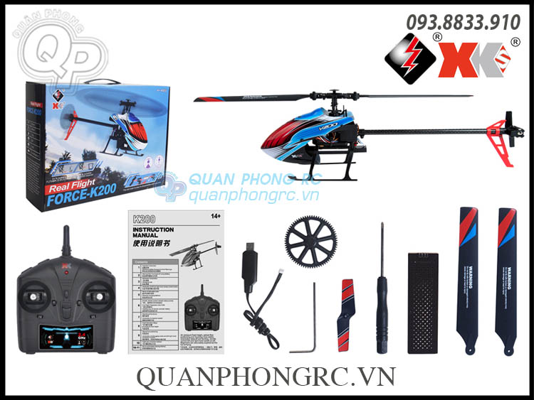 Máy Bay Trực Thăng WLtoys XK K200 4CH 6 Axis 2.4G RC Helicopter Air Pressure Fixed Height Optical Flow RTF