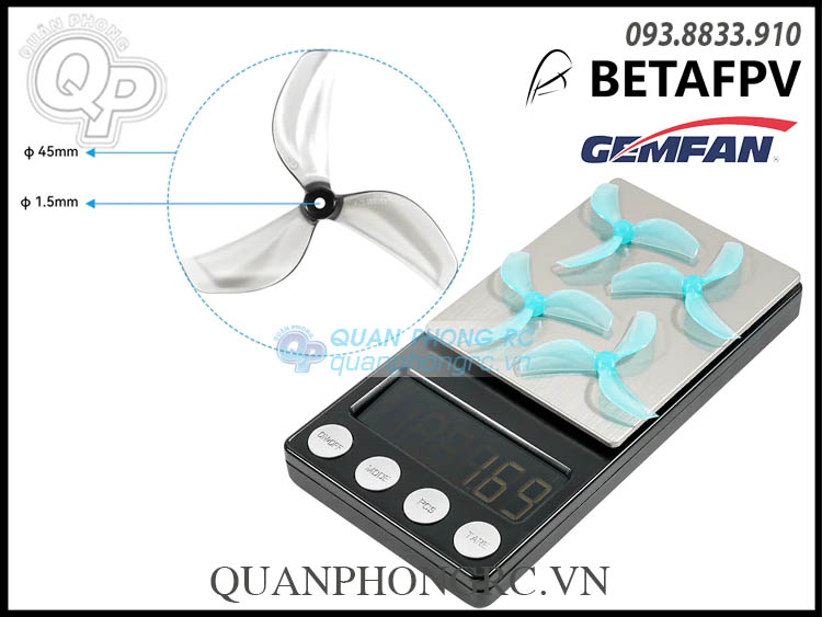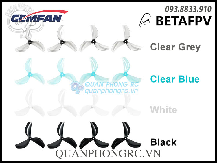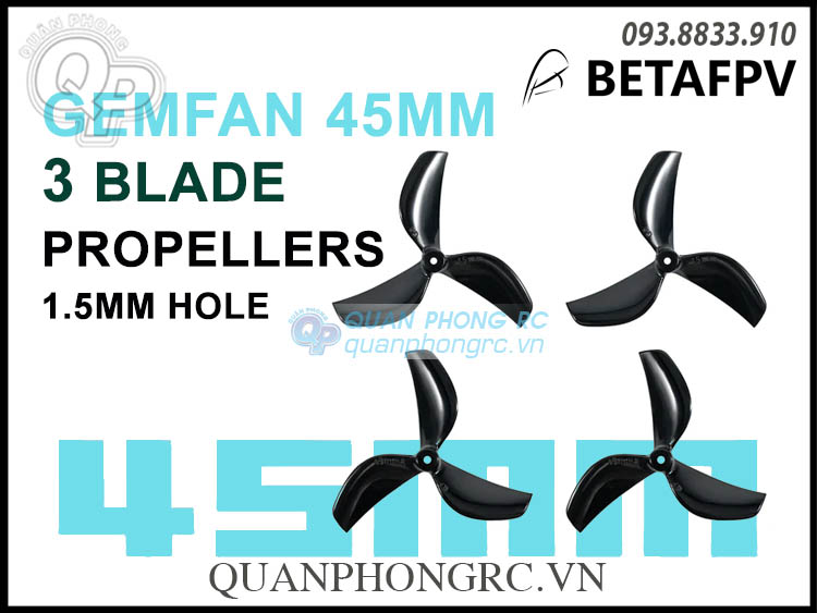 2 Cặp Cánh 3 Lá GEMFAN 45MM 3-Blade PC Propellers 1.5mm Hole (4 Cái)