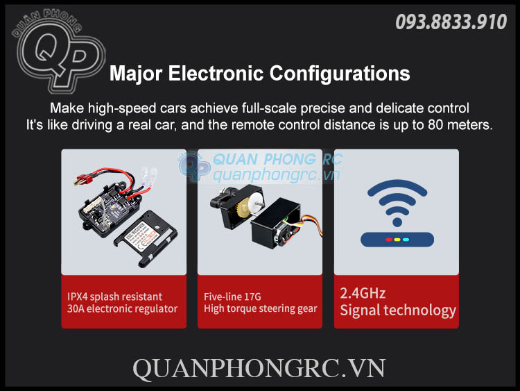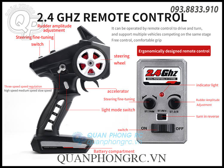 5. 2.4G full-scale synchronous remote control system, full-scale throttle/steering;