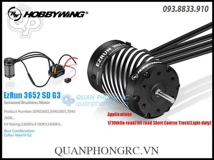 HobbyWing EZEUN 3652 SD G3 Sensored Brushless Motor FEATURE: