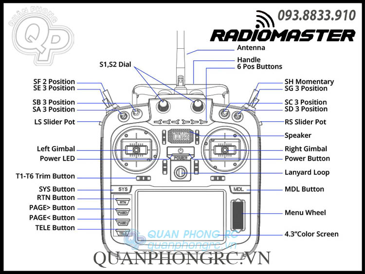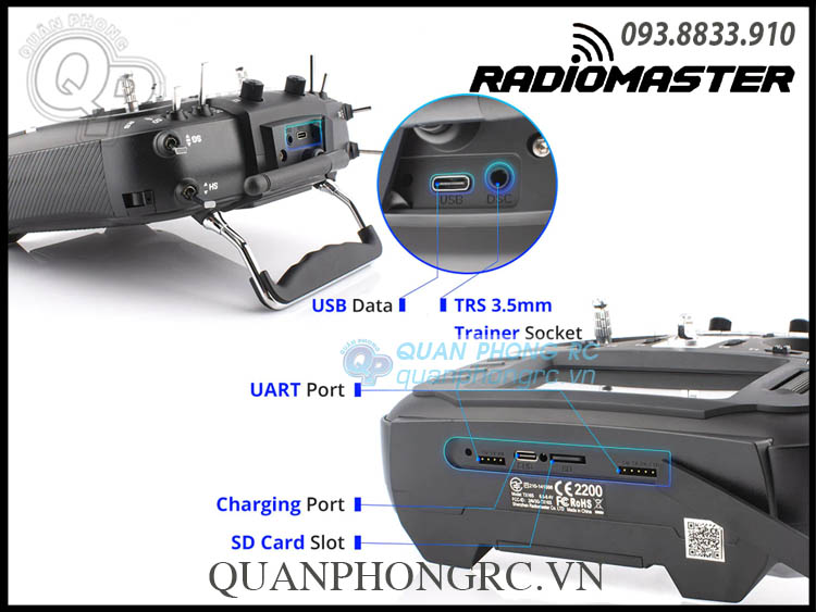 - Phần mềm có sẵn: EdgeTX (mặc định), có thể up lại OpenTX