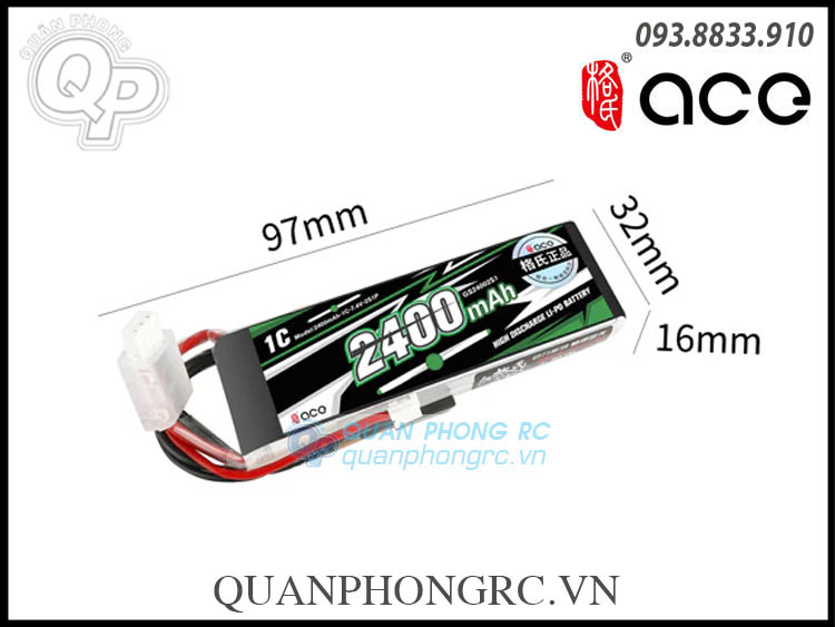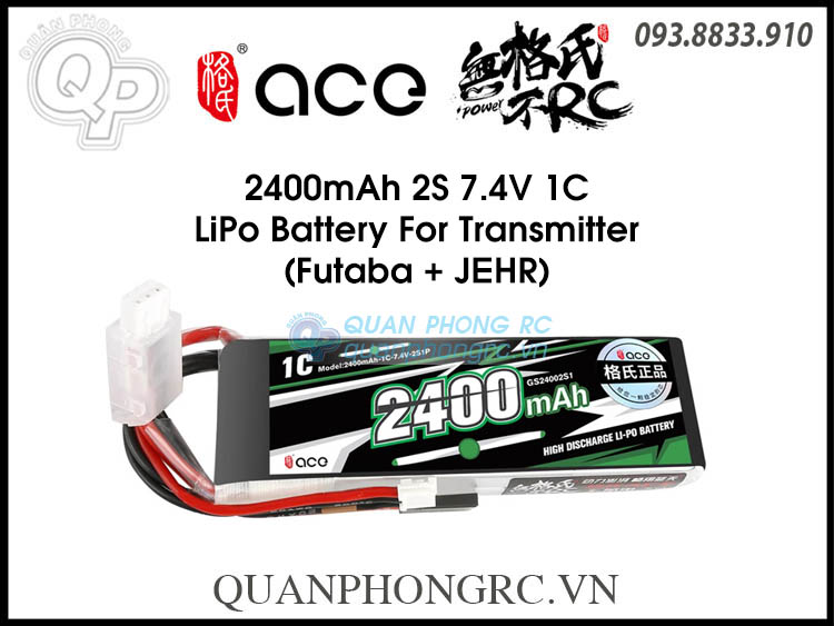 Ace 2400mAh 2S 1C 7.4V LiPo Battery For Transmitter Futaba + JEHR Plug