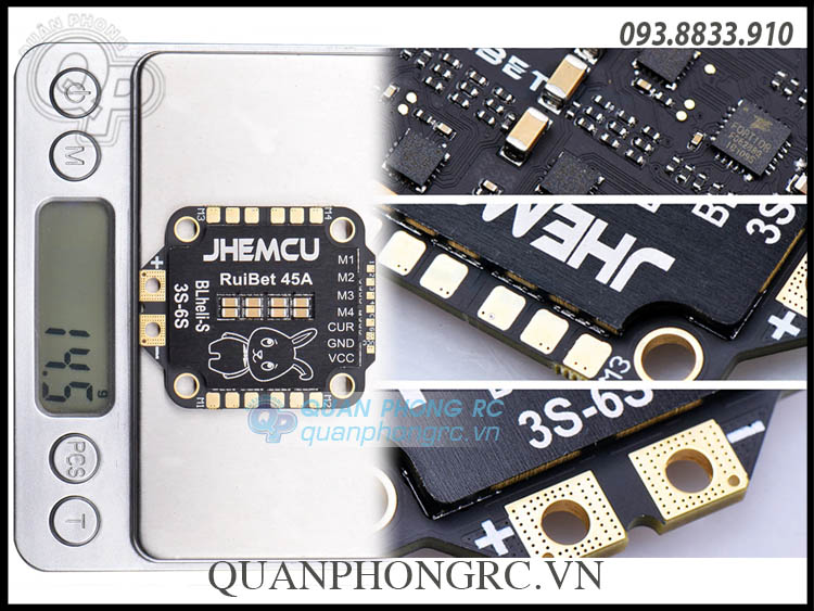 - Tên sản phẩm: JHEMCU RuiBet 45A 3-6S BLHeli_S 4in1 ESC