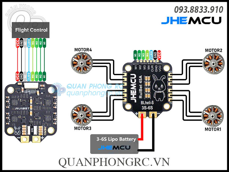 Mạch Điều Tốc JHEMCU RuiBet 45A 3-6S BLHeli_S 4in1 ESC