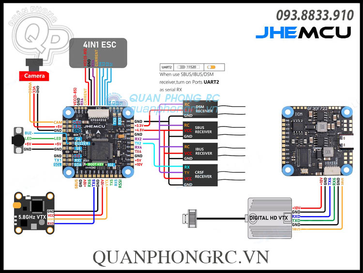 Tên SP: Mạch cân bằng Mạch Cân Bằng JHEMCU F722 Baro OSD Dual BEC 3-8S