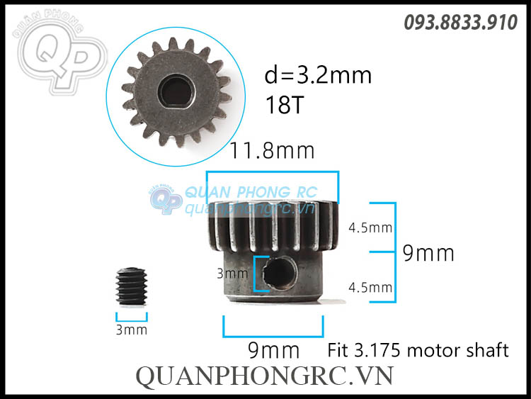 - Nhông motor 18T cho motor không chổi than chính hãng SCY cho xe RC 1/16 SCY.