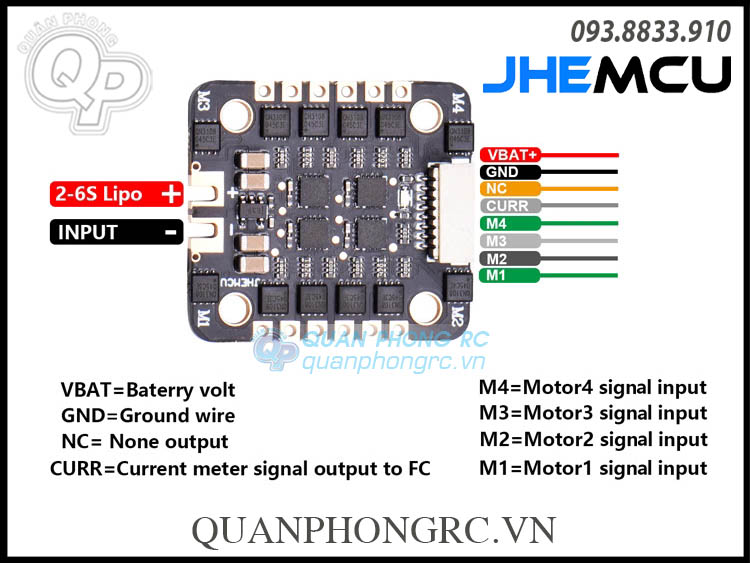 - Tên sản phẩm: JHEMCU EM 40A 2-6S Dshot600 BLHeli_S 4in1 ESC