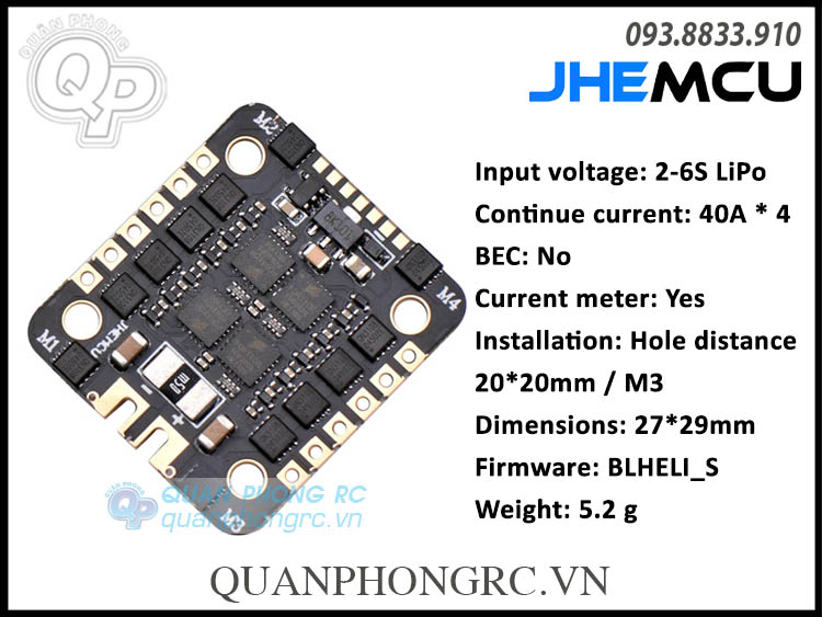 Mạch Điều Tốc JHEMCU EM 40A 2-6S Dshot600 BLHeli_S 4in1 ESC 20x20