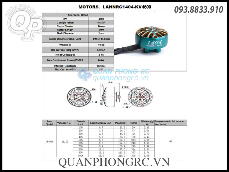 LANNRC 1404 Plus 4600KV 2-4S Brushless Motor