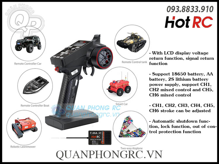 HOTRC F-06A Rx: https://quanphongrc.vn/ct/may-bay-dieu-khien/5646/bo-thu-song-hotrc-f-06a-6ch-pwm-receiver-cho-xe-va-tau.html