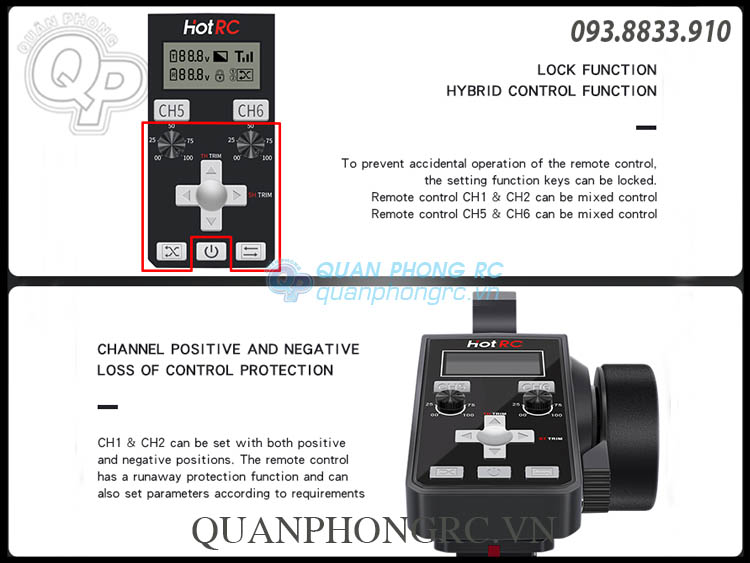 Can be set to runaway protection, 1-2CH can be set to mix control mode, 5-6CH can be set to mix control mode,fine-tuning button can be set to lock