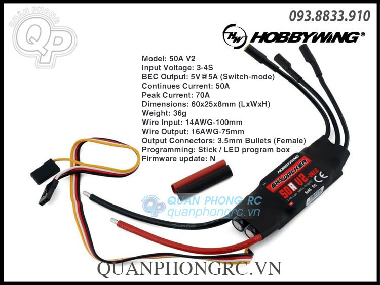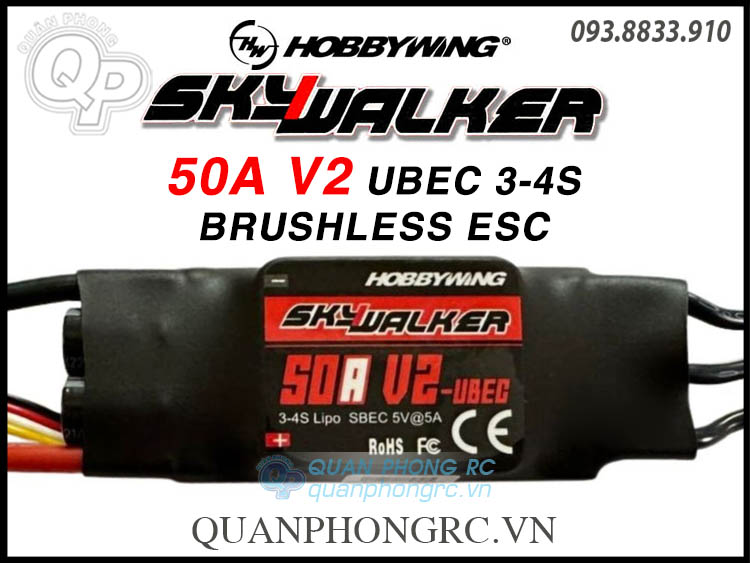 Bộ Điều Tốc Hobbywing SkyWalker 50A V2 UBEC Brushless ESC (3-4S) 80060442
