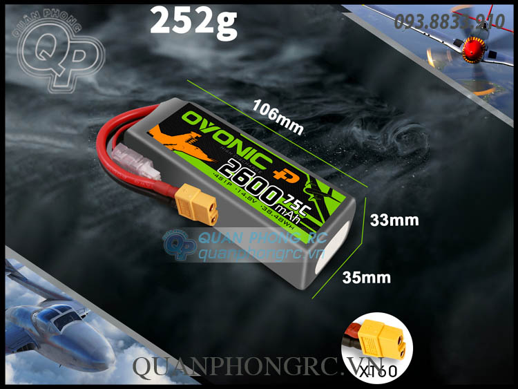 Ovonic 2600mAh 4S 75C 14.8V LiPo Battery XT60 Plug For FPV Racing Drones