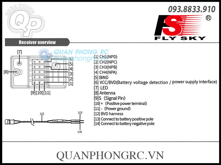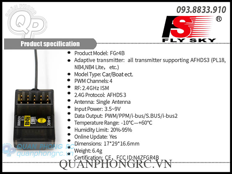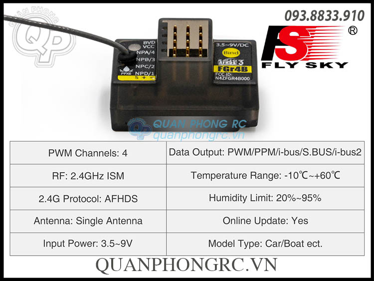 Bộ Thu Sóng FS-FGr4B 2.4Ghz 4CH AFHDS3 Receiver Cho FlySky Noble Paladin