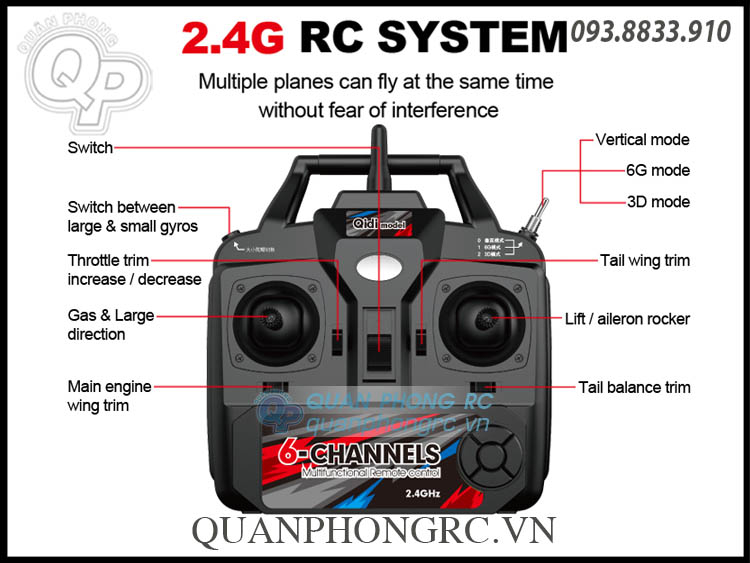 1. Bộ máy bay cánh bằng full combo QIDI-550 với chức năng kháng gió tốt, mạch cân bằng hỗ trợ bay và nhào lộn 3D6G, đặc biệt chức năng treo 3D Vertical mode chỉ với 1 nút gạt..