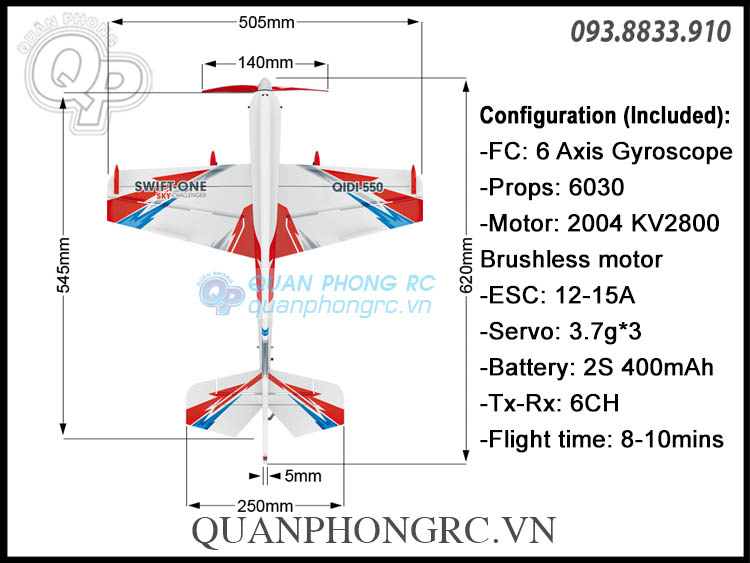 Máy Bay EPO QIDI-550 F3P 3D6G Wingspan 50cm One Key Vertical Flight RTF