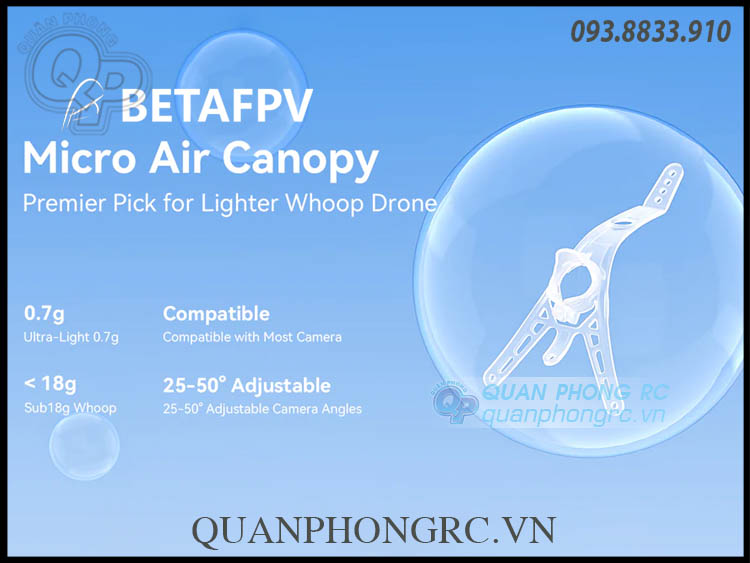 - With a mere weight of 0.74g, the canopy boasts a simplistic yet durable structure, ensuring effortless installation. It stands as the premier pick for ultra-light small whoop drones.