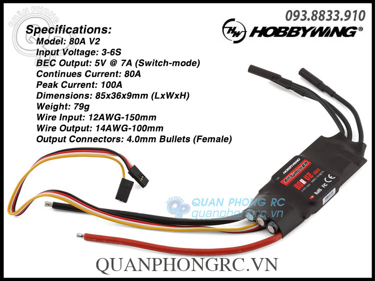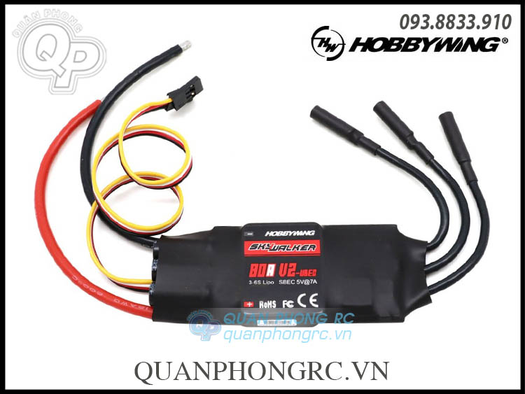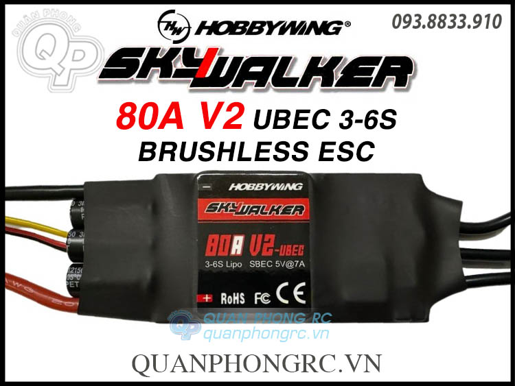 Bộ Điều Tốc Hobbywing SkyWalker 80A V2 UBEC Brushless ESC (3-6S) 80060440