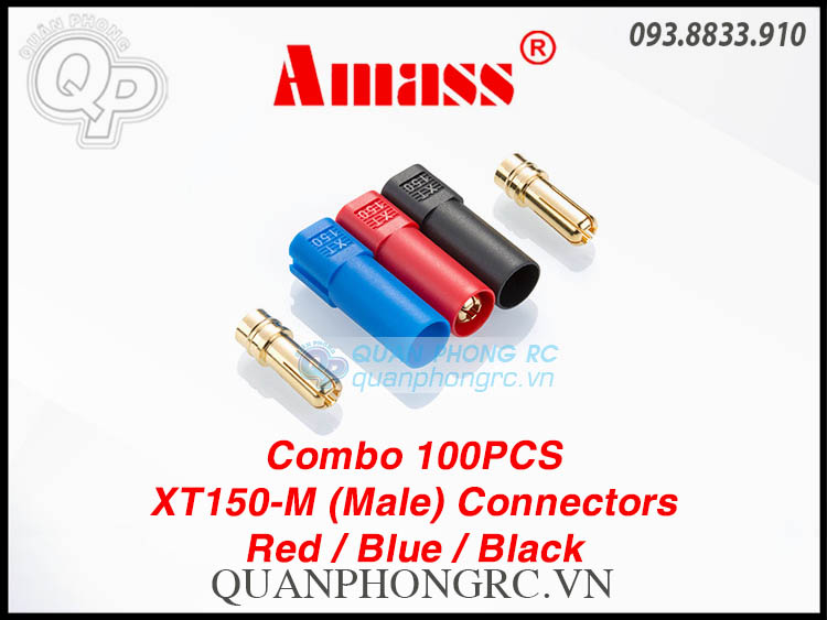 Combo 100Pcs Jack AMASS XT150-M Male Connectors Đực (Đầu Chuối ESC) Red/Blue/Black