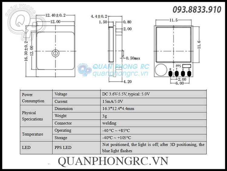 - Voltage:DC 3.6V-5.5V, typical: 5.0V