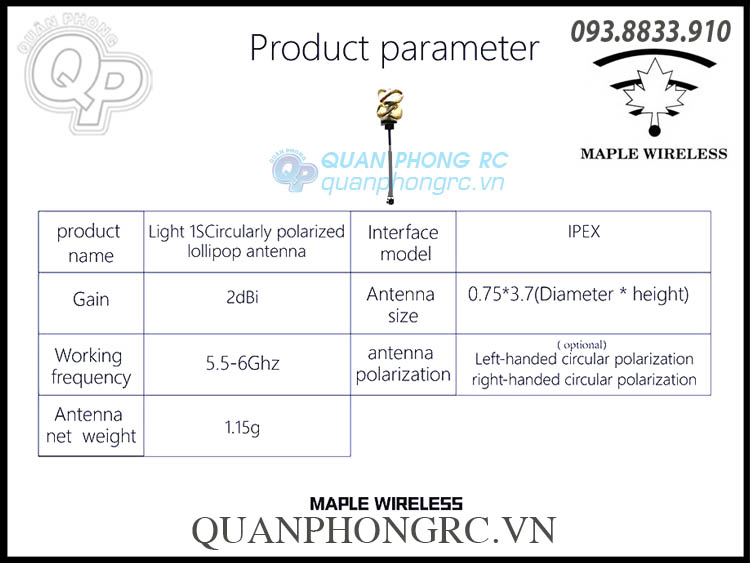 - Tên sản phẩm: Ăng-ten phân cực tròn 1S Maple Wireless