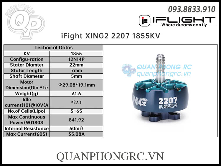 Combo 4 Motor iFlight XING 2 2207 1855KV Brushless Motor 3-6S (4 Pcs)