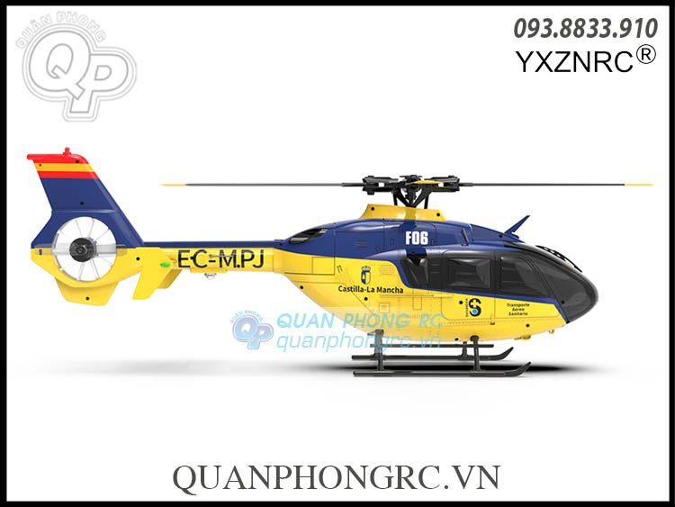 Máy bay trực thăng RC YX F06, được thiết kế với tỷ lệ thu nhỏ 36:1 của máy bay trực thăng Eurocopter EC135, nó tự hào có các chi tiết hình dáng mô phỏng cao và ánh đèn cool ngầu, khiến nó trở nên nổi bật và chân thực.