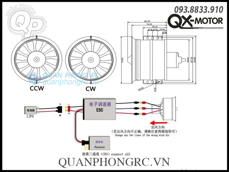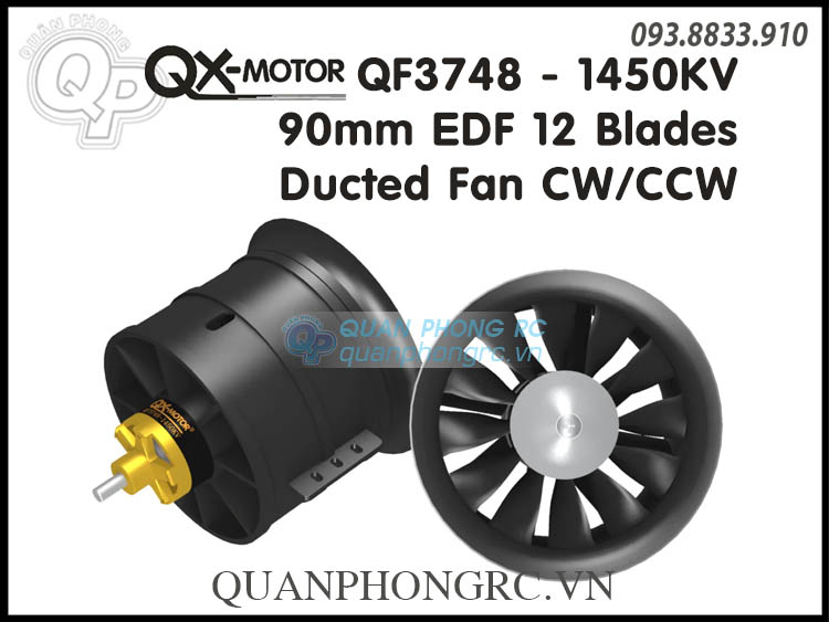- 1 X QX-MOTOR Ducted Fan 90mm 12 Blades QF3748 1450KV EDF Brushless Motor 6S CW hoặc CCW