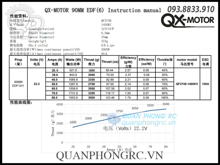 - Số hiệu (model): QF3748- Kv (rpm): 1450KV