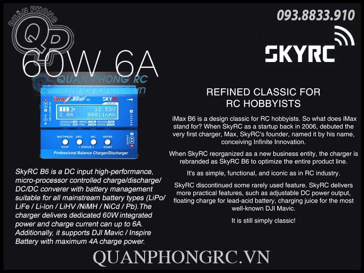 Sạc Chính Hãng SKYRC iMAX B6 V2 Professional Balance Charger / Discharger