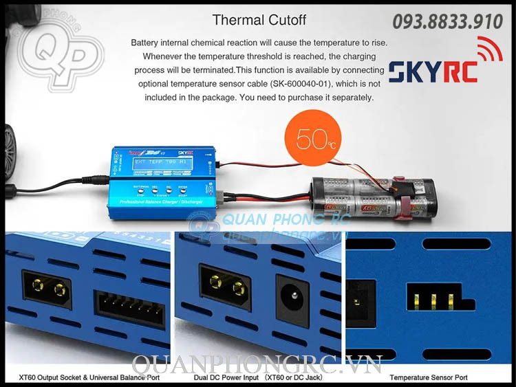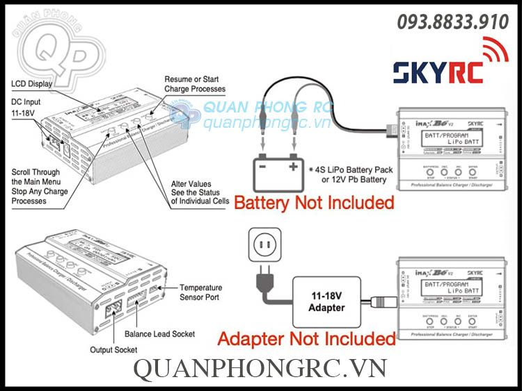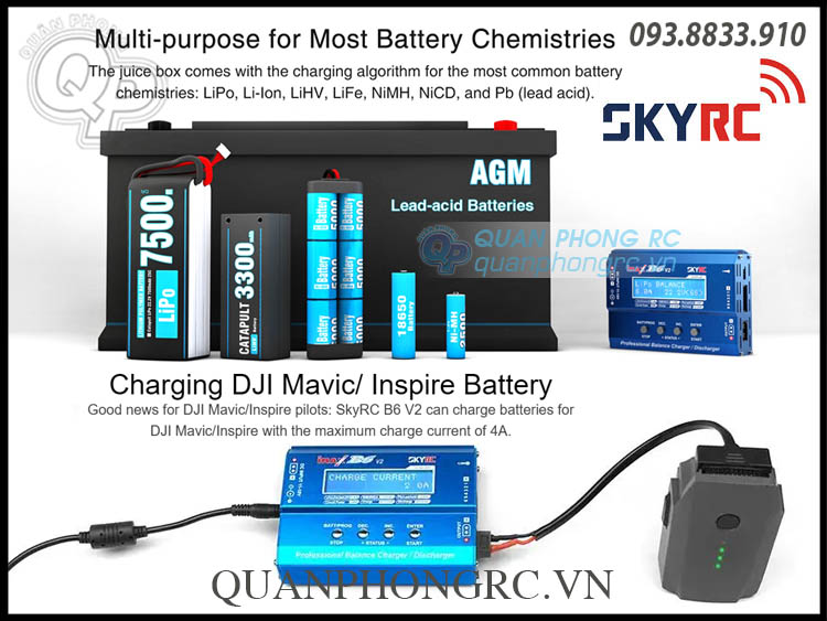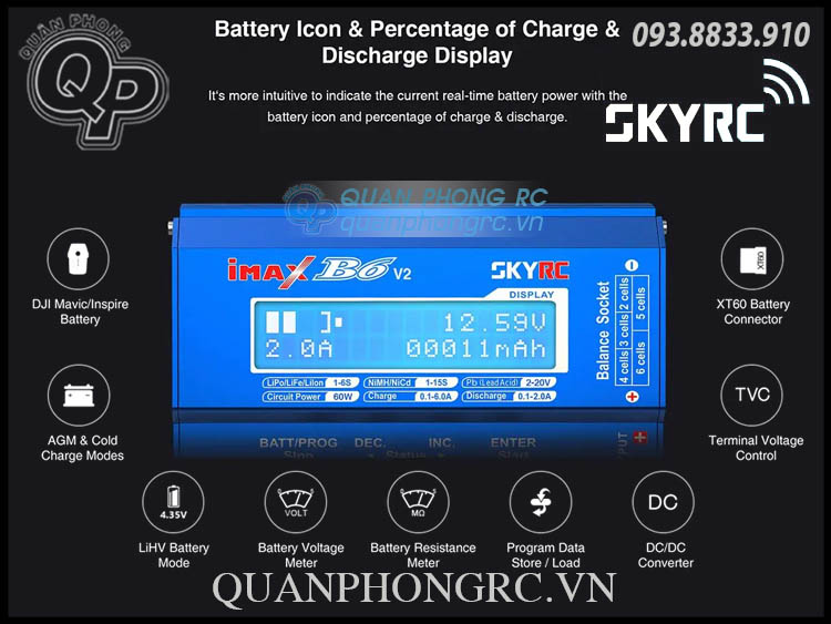 - Phạm vi dung lượng pin: NiMH/NiCd/LiPo/LiHV/Life/Li-Ion/Pb/DJI: 100-50000mAh