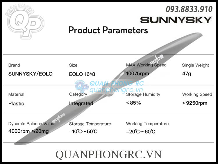 Cánh Sunnysky EOLO 16x8 Electric Propeller