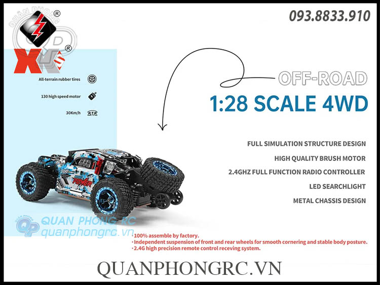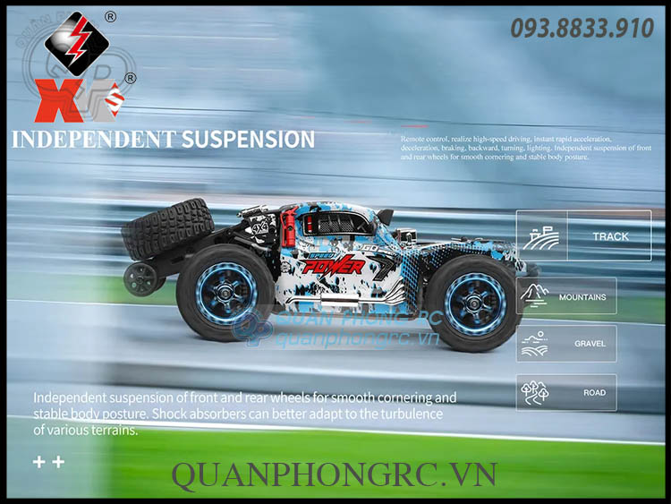 1. Xe điều khiển từ xa 4WD: Tốc độ tối đa 30km/h, sử dụng động cơ 130 rpm công suất siêu khỏe, điều tốc điện tử, năng lượng điện chuyển đổi thành công suất tối đa, 4 bánh lái cho xe đua có thể cung cấp mô-men xoắn điện mạnh mẽ đáng kể làm cho chiếc xe dễ dàng để chinh phục mọi nẻo đường.