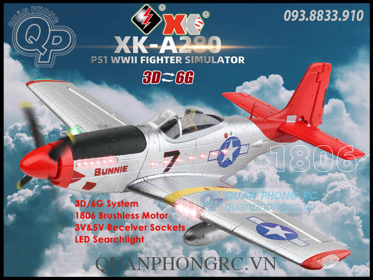 Máy Bay WLtoys XK A280 P51 3D6G RC Airplane RTF Support FUTABA DSM S-Bus Rx