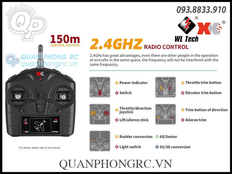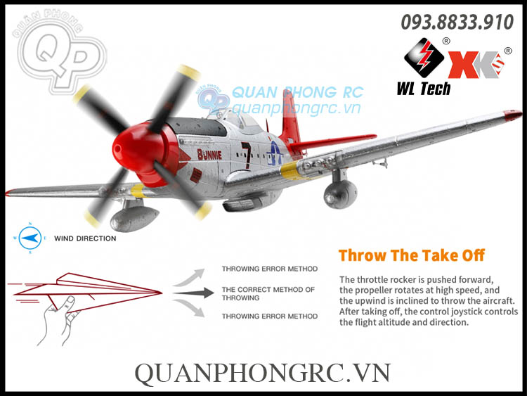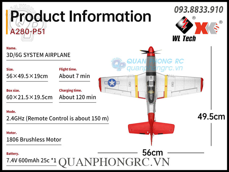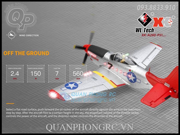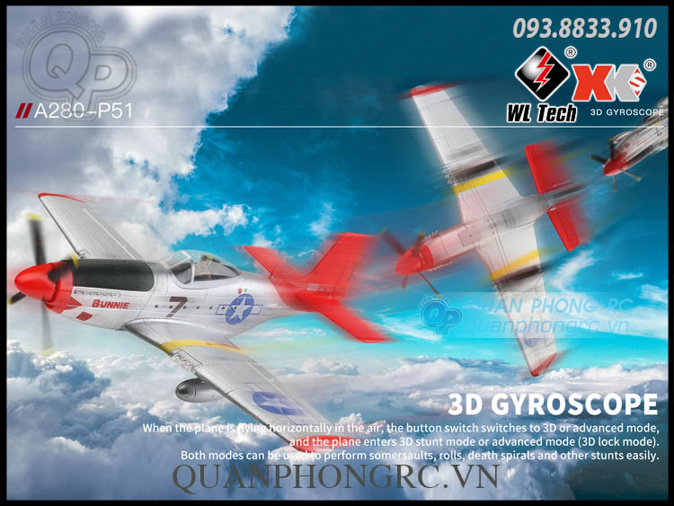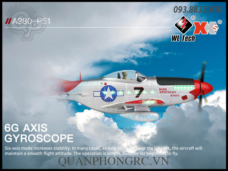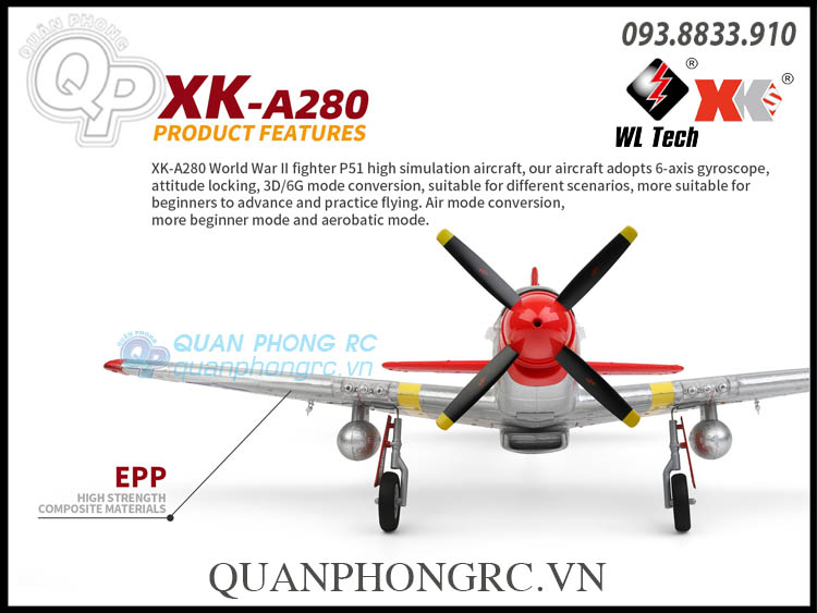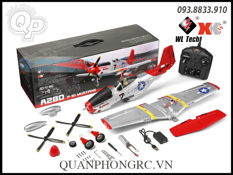 1. Được làm bằng xốp EPP+ chống va đập, máy bay RC WLtoys A280 là bản mô phỏng chiến đấu cơ P51 trong Thế chiến II.