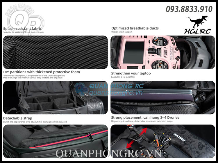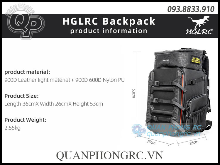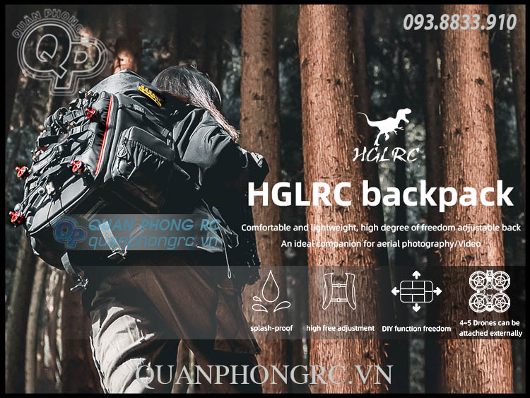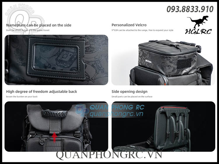 Ba lô HGLRC là một chiếc ba lô cỡ trung bình dành cho người dùng FPV Drone và những người đam mê nhiếp ảnh. Phần lớn chất liệu vải chính của nó là vải chống nước, và Ba lô được trang bị khóa kéo chống thấm nước; Thiết kế các ngăn trong túi có thể phân bổ không gian chứa đồ một cách linh hoạt; Phần lưng dày có thể hỗ trợ tốt; Nhìn chung, nó có tiềm năng mở rộng và DIY rất cao, đồng thời là lựa chọn tốt nhất cho những người đam mê bay và đam mê nhiếp ảnh!