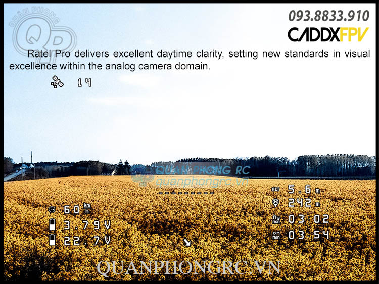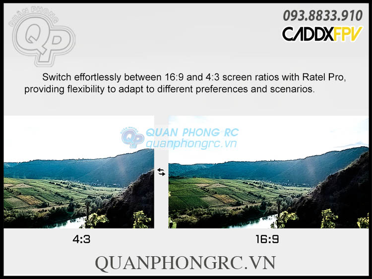 - [Định dạng video 4:3 và 16:9] Được thiết kế với FOV 125°, Ratel Pro mang đến cho phi công trải nghiệm hình ảnh tự nhiên trong suốt chuyến bay, khôi phục tính chân thực của các cảnh quay.