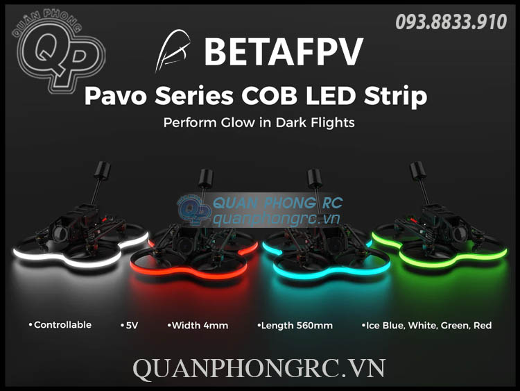The Pavo Series COB LED Strip is a 5V-powered LED strip measuring 560 mm*4 mm. It provides increased visibility and facilitates easy observation of the drone's flight by the pilots during nighttime or poorly lit conditions, which also enhances operational safety, It can be securely mounted on the frame whoop duct, adding unique lighting effects and a visually captivating appearance. Choose from a single color option of ice blue, white, green, or red, or even mix multiple colors to personalize and elevate your flying experience while ensuring safety.
