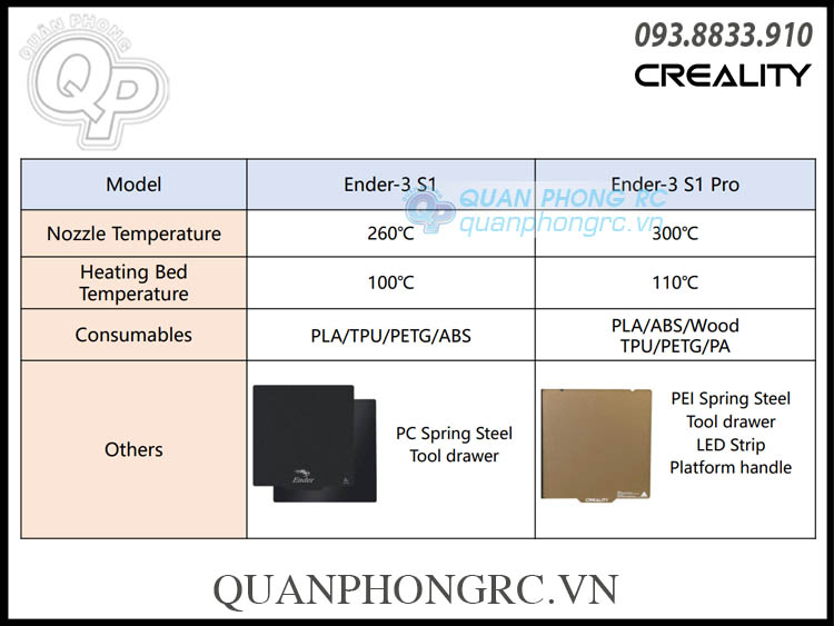 - Ender 3 S1 Pro: https://quanphongrc.vn/ct/may-bay-dieu-khien/4665/may-in-3d-creality-ender-3-s1-fdm-printer.html