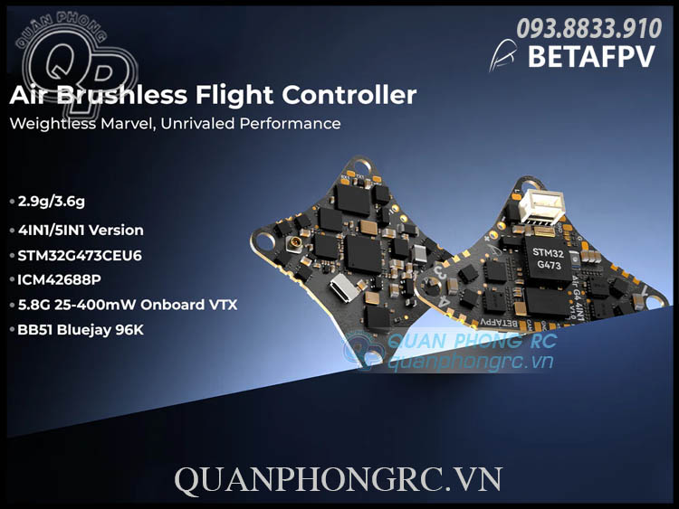 - Air Brushless Flight Controller, the first 1S FC that utilizes the G473 processor, experienced a remarkable 55% increase in computing speed and lightning-fast response times for precise racing and complex freestyle maneuvers, surpassing the F411.