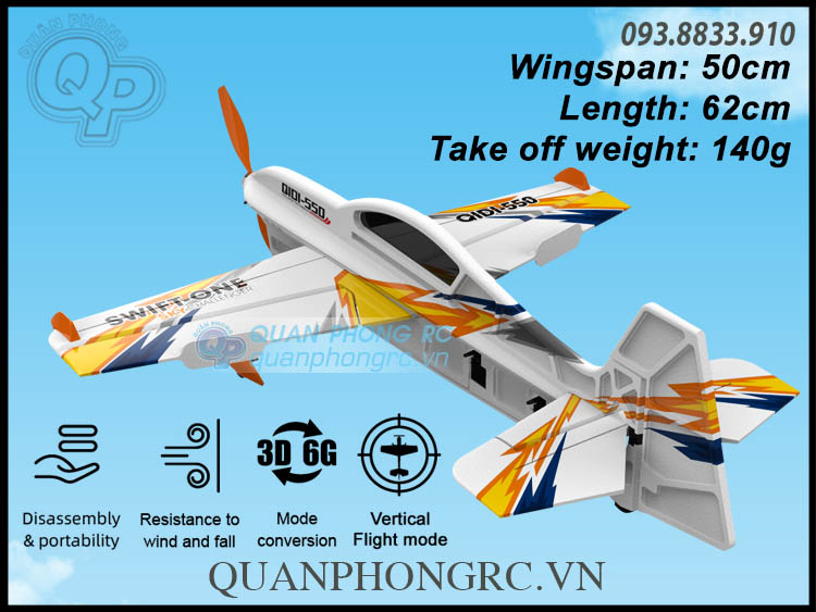 Máy Bay EPO QIDI-550 F3P 3D6G Wingspan 50cm One Key Vertical Flight RTF